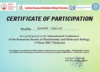 - Ianchis Raluca, Ninciuleanu Claudia, Gifu Catalina, Munteanu Tatiana, Alexandrescu Elvira, Preda Silviu, Somoghi Raluca, Gabor Raluca, Nistor Cristina, Nitu Sabina, Petcu Cristian,"Possible Vehicles for Controlled Drug Delivery based on PMAA-Salecan-Organomodified Clay Nanocomposites", International Conference "Chimia 2018" - New Trends in Applied Chemistry, 22-24 May 2018, Constanta, Romania.