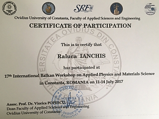- Ioana Catalina Gifu, Raluca Ianchis, Ludmila Aricov, Elena Livia Simion, Dan Florin Anghel, Elvira Alexandrescu, Cristina Lavinia Nistor, Sabina Georgiana Nitu, Raluca Somoghi, Cristian Petcu, "Surface Hydriphobization by Electrostatic Depozition of Hydrophobically Modified Poly(Acrylates) with Inorganic Filler", 17th International Balkan Workshop on Applied Physics, 11-14 July 2017, Constanta, Romania.