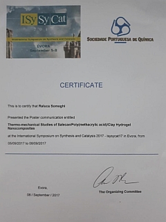 - Raluca Ianchis, Raluca Gabor, Raluca Somoghi, Ioana Catalina Gifu, Claudia Ninciuleanu, Cristina Lavinia Nistor, Sabina Nitu, Elvira Alexandrescu, Cristian Andi Nicolae, Cristian Petcu, "Thermo-mechanical Studies of Salecan/Poly(methacrylic acid)/Clay Hydrogel Nanocomposites", International Symposium on Synthesis and Catalysis - ISySyCat 2017, 5-8 September 2017, Evora, Portugal.