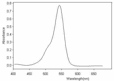 Spectrul de absorbtie al Rhodaminei B in etanol (conc.=9*10-6 mol/L)