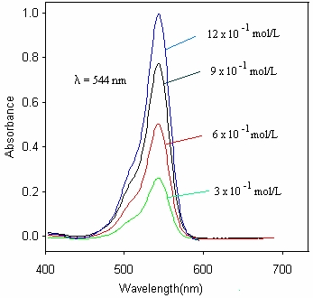 Spectrele de absorbtie al Rhodaminei B in etanol la diferite concentratii