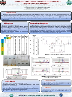 - C. Mihaescu, L.O. Cinteza, C.L. Nistor, C. Petcu, S.G. Burlacu, B. Trica, C. Scomoroscenco, R. Ianchis, C.M. Ninciuleanu, C. Gifu, E. Alexandrescu, "Preliminary Studies on Silica Nanoparticles Preparation as Transport Vectors for Curcumin", Priorities of Chemistry for a Sustainable Development - PRIOCHEM XVII ed., Bucharest, Romania, 27-29 October (2021).
