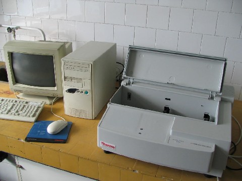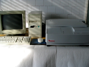 The Nicolet Evolution 500 is a double beam spectrophotometer built around a robust aluminium base casting. The optical system is based around an Ebert Monochromator using a 1200 line/mm Holographic Grating. Slit sub-assemblies can be fitted to give variable bandwidth or one of 2 fixed bandwidths.